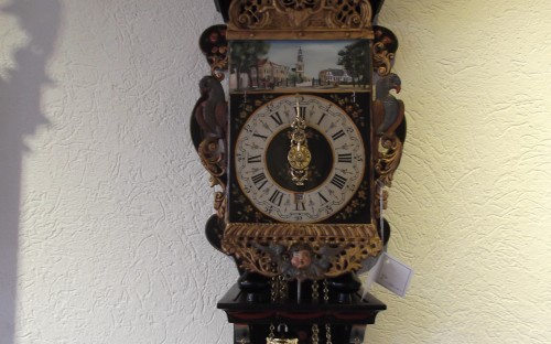 verkoop nieuwe klokken Friese stoelklok Originele Friese stoelklok met vlakke kast en datum stand. Prijs:op aanvraag.